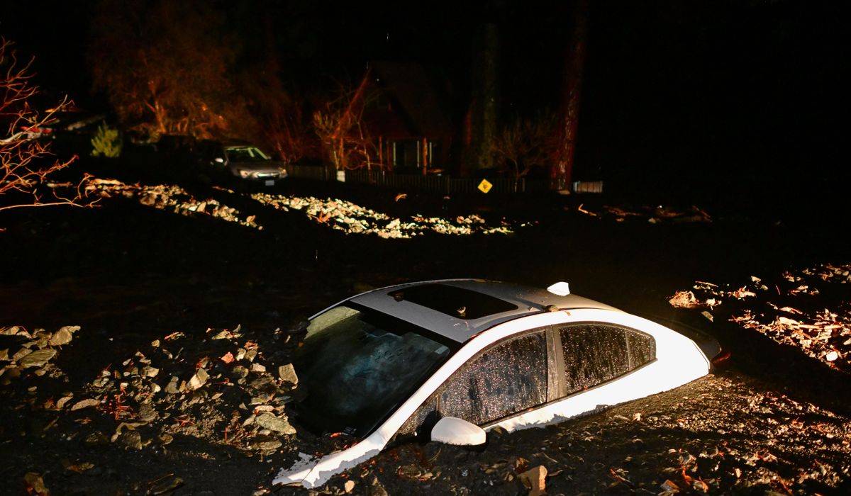 San Bernardino County firefighters said they rescued people trapped in cars when mud and debris rushed down a road leading into Wrightwood, a resort town in the San Gabriel Mountains about 80 miles (130 kilometers) northeast of Los Angeles. It was not immediately clear how many were rescued.