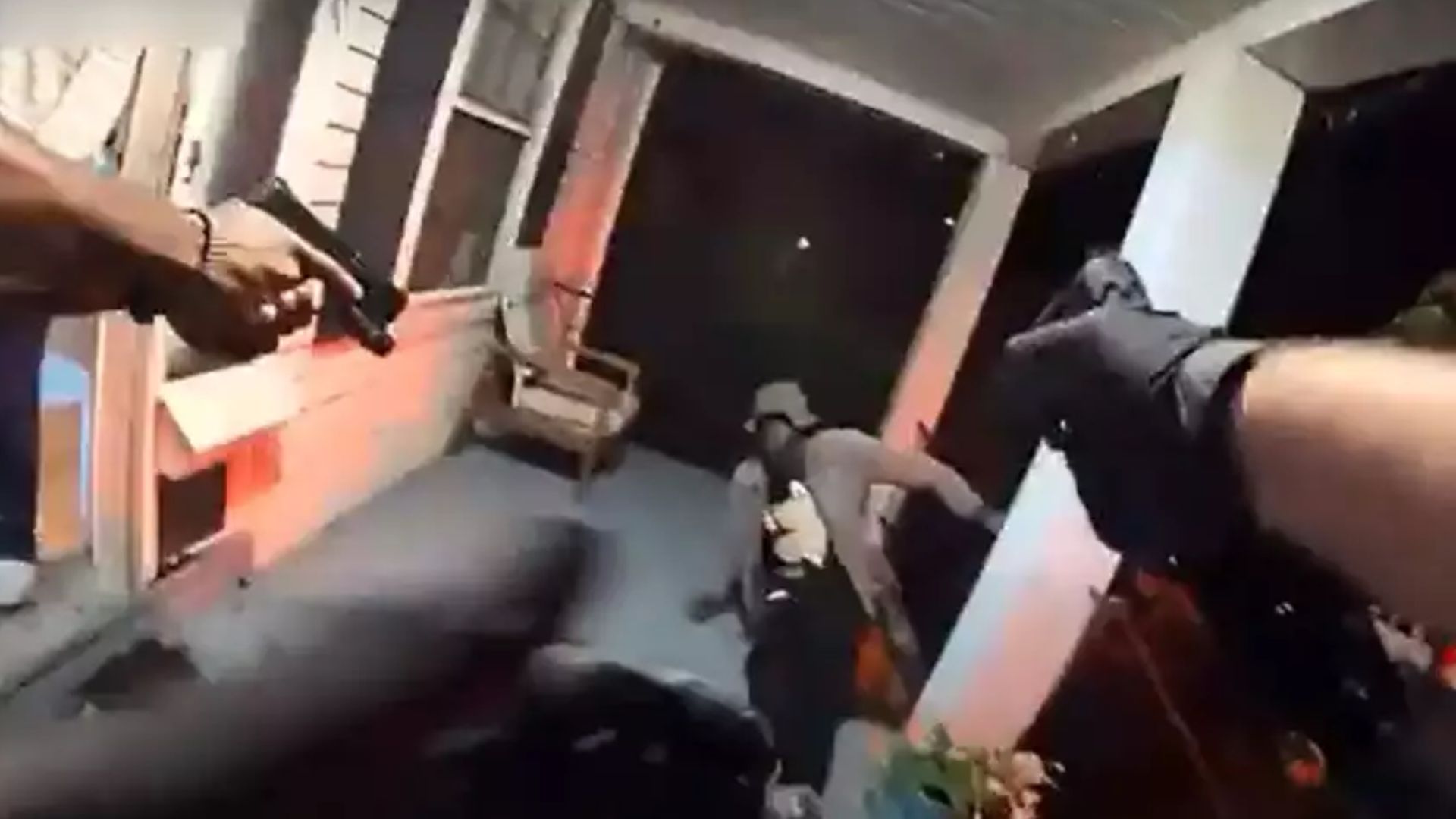 The footage captured officers knocking and asking Jackson to unlock the door as he appeared to be arguing with someone inside the residence, with his back turned toward the officers.
