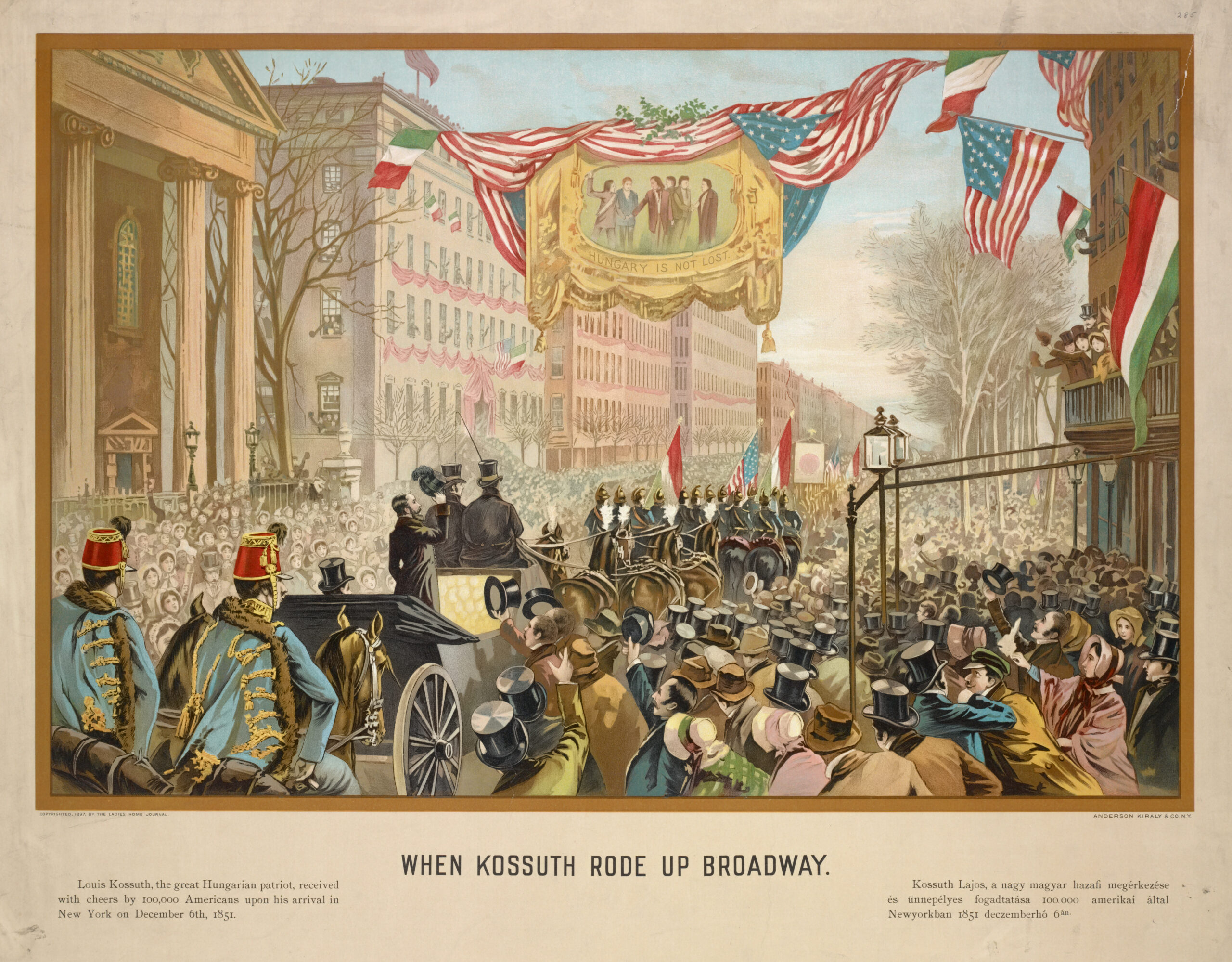 Exiled, Kossuth toured the United States in 1851–52, drawing massive crowds from New York to St. Louis. Coins struck in his honor called him the “father of European democracy” and the “George Washington of Europe.” Americans compared him to their own Founding Fathers; he in turn thanked them for proving liberty could not only be declared, but sustained.