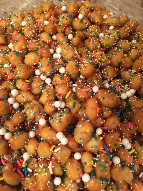 And we can’t forget dessert! “Struffoli” are little balls of fried dough covered in honey and sprinkles and are considered a Neapolitan dessert. Others include “mostaccioli” and “roccocò,” which are types of cookies, and “pandoro” and “panettone” are sweet breads.