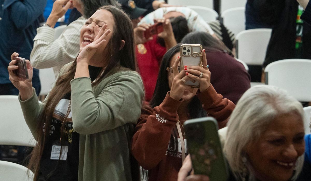 Over 200 Lumbee members gathered in a gymnasium in Pembroke, North Carolina, to watch the final Senate vote on television. They celebrated with shouts, raised hands and applause as the unofficial tally indicated the bill would receive final congressional approval.