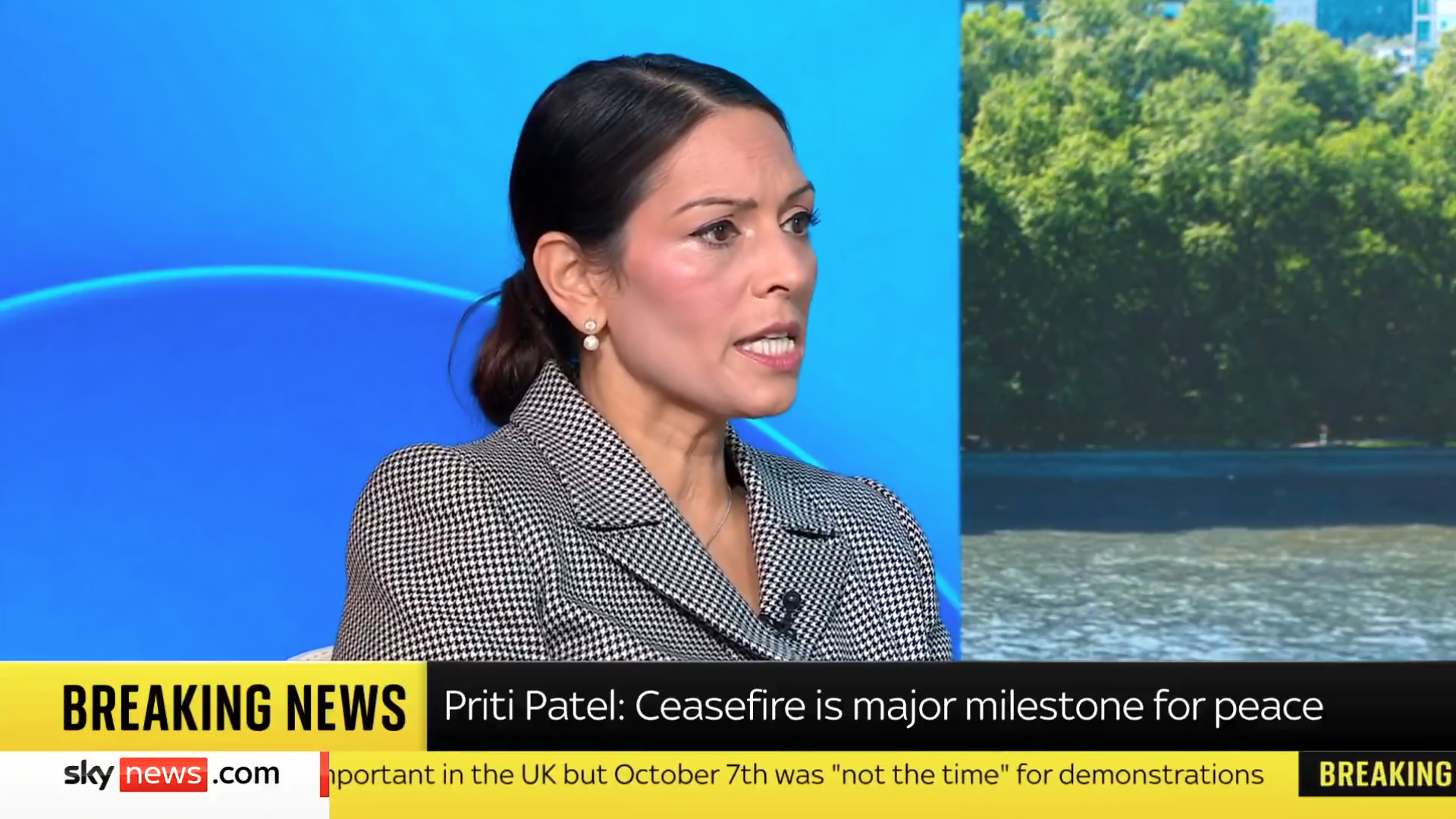 Dame Priti Patel tells @TrevorPTweets that the ceasefire in Gaza is a ‘major milestone’ and praises the US and Egypt for their role in peace negotiations.https://t.co/jnqh0Ns5QE #TrevorPhillips