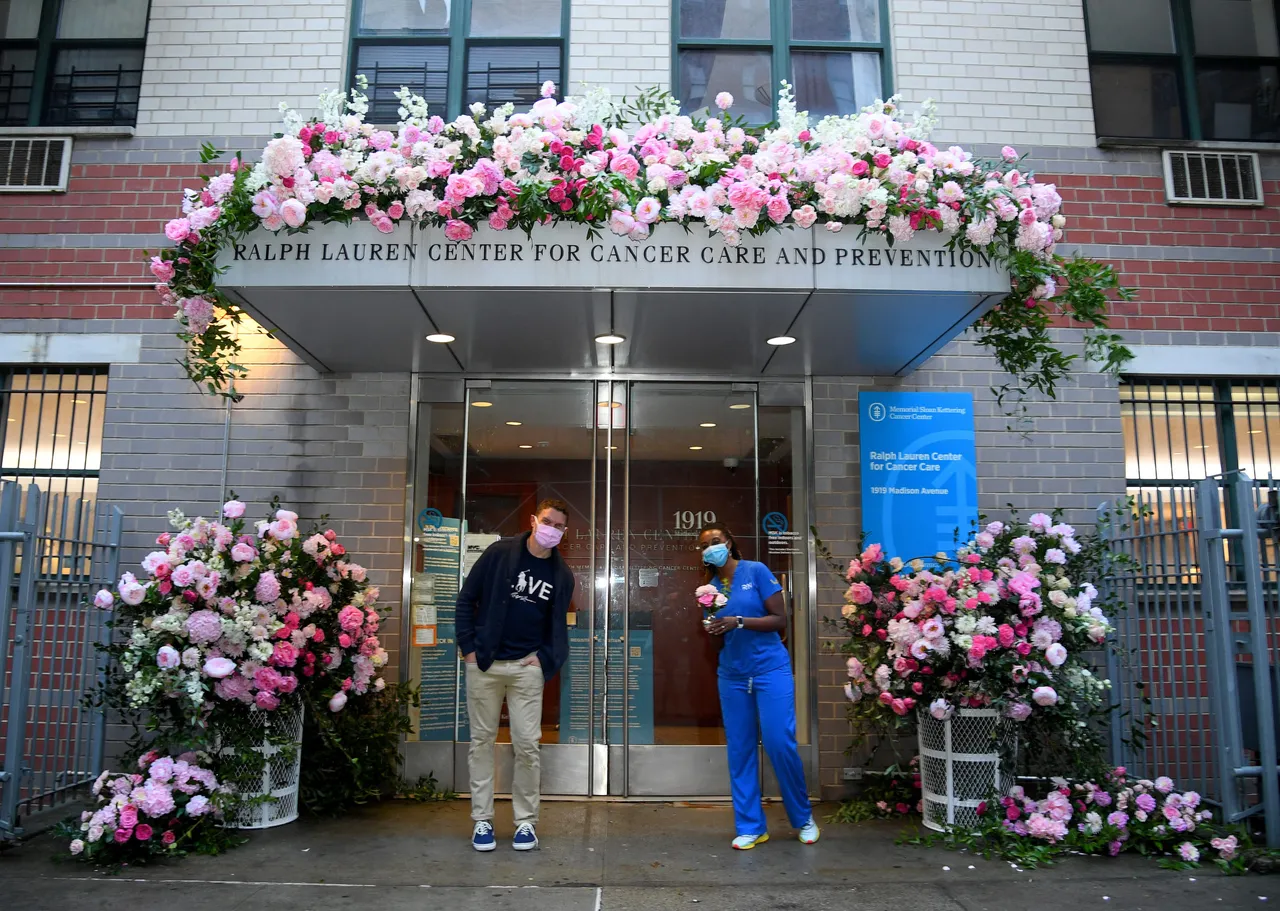 NEW YORK, NEW YORK – OCTOBER 13: View of the Ralph Lauren Fragrances x Lewis Miller Design Flower Flash in front of Memorial Sloan Kettering Ralph Lauren Center (RLC) in Harlem to raise awareness for the 20th anniversary of Ralph Lauren’s Pink Pony Campaign and honor healthcare workers and those struggling with cancer. The flowers used in the flash were inspired by the Ralph Lauren Romance Pink Pony Edition fragrance, featuring roses, peonies and 20 shades of pink florals. (Photo by Dimitrios Kambouris/Getty Images for Ralph Lauren Fragrances)