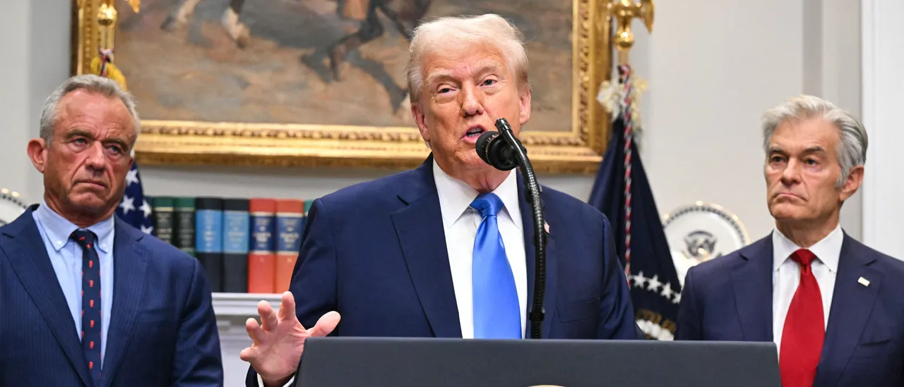 WASHINGTON, DC – MAY 22: (L-R) Agriculture Secretary Brooke Rollins, U.S. President Donald Trump, Health and Human Services Secretary Robert F. Kennedy Jr. and Education Secretary Linda McMahon attend and release event for a new Make America Healthy Again Commission report in the East Room of the White House on May 22, 2025 in Washington, DC. (Photo by Chip Somodevilla/Getty Images)