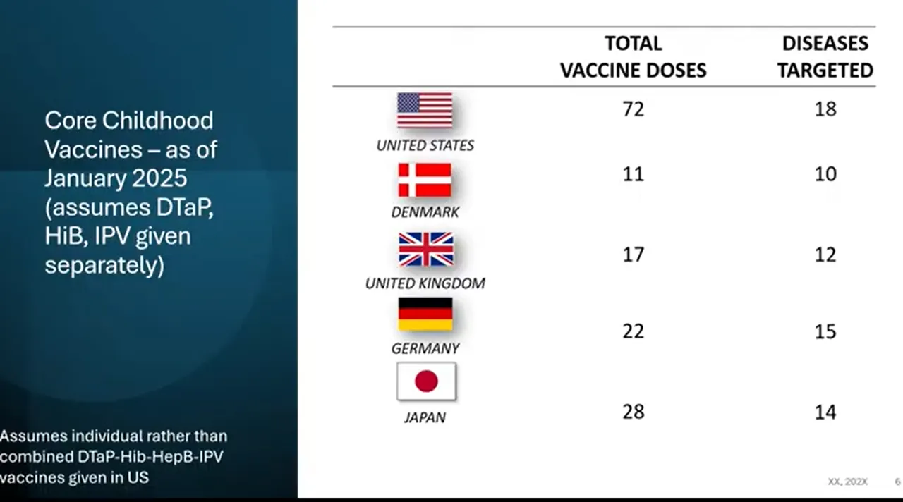 The meeting included a presentation by FDA Center for Drug Evaluation and Research Director Tracy Beth Høeg showing the discordance between the childhood vaccination schedule in the U.S. and those of other developed nations.