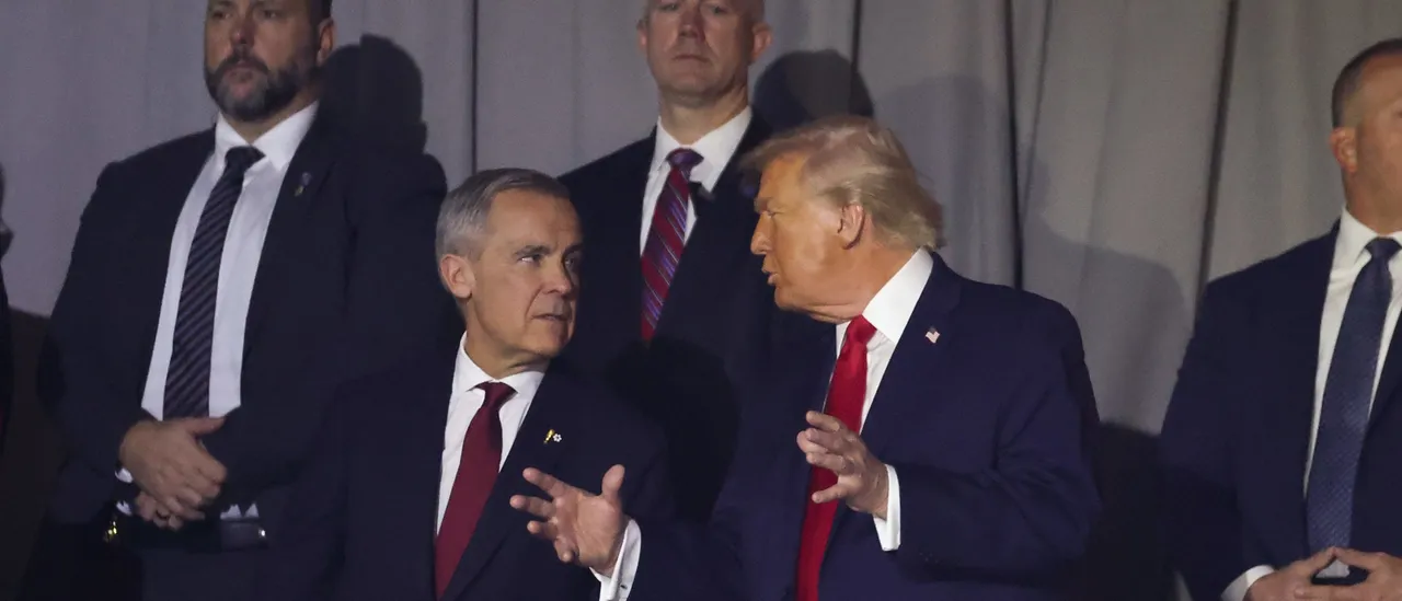 President Donald Trump threatened Canadian Prime Minister Mark Carney with a 100% tariff if the U.S.’s northern neighbor “makes a deal with China.”