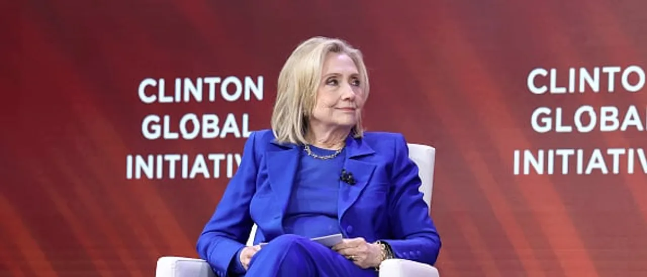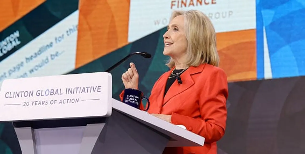 NEW YORK, NEW YORK – SEPTEMBER 25: Hillary Clinton speaks onstage during the Clinton Global Initiative 2025 Annual Meeting at New York Hilton Midtown on September 25, 2025 in New York City. (Photo by JP Yim/Getty Images for New York Hilton Midtown)
