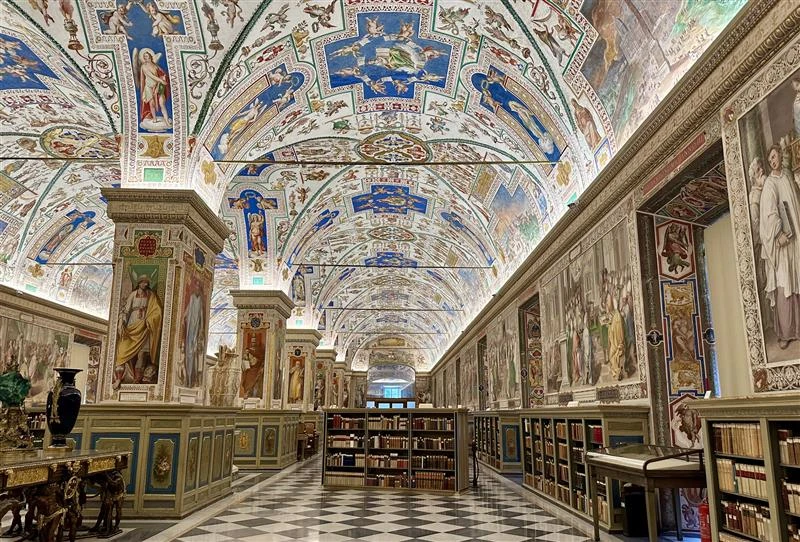 The Sistine Hall of the Vatican Apostolic Library, which include many manuscripts that have been digitized. Credit: Courtney Mares/CNA