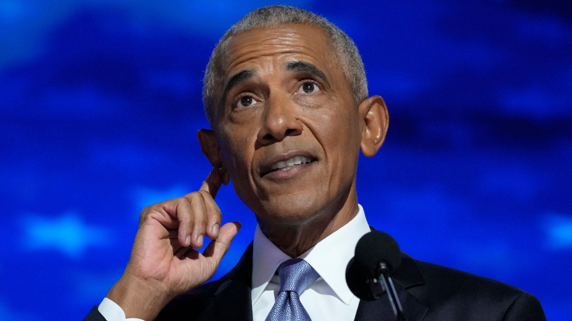 Aug 20, 2024; Chicago, IL, USA; Former President Barack Obama speaks during the second day of the Democratic National Convention at the United Center. Mandatory Credit: Mike De Sisti-USA TODAY