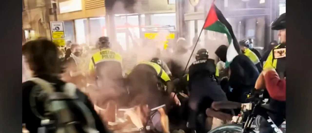Wild video shows the moment several protestors were arrested after a Pro-Palestine rally on the Boston Common turned violent and several officers were injured, according to police.