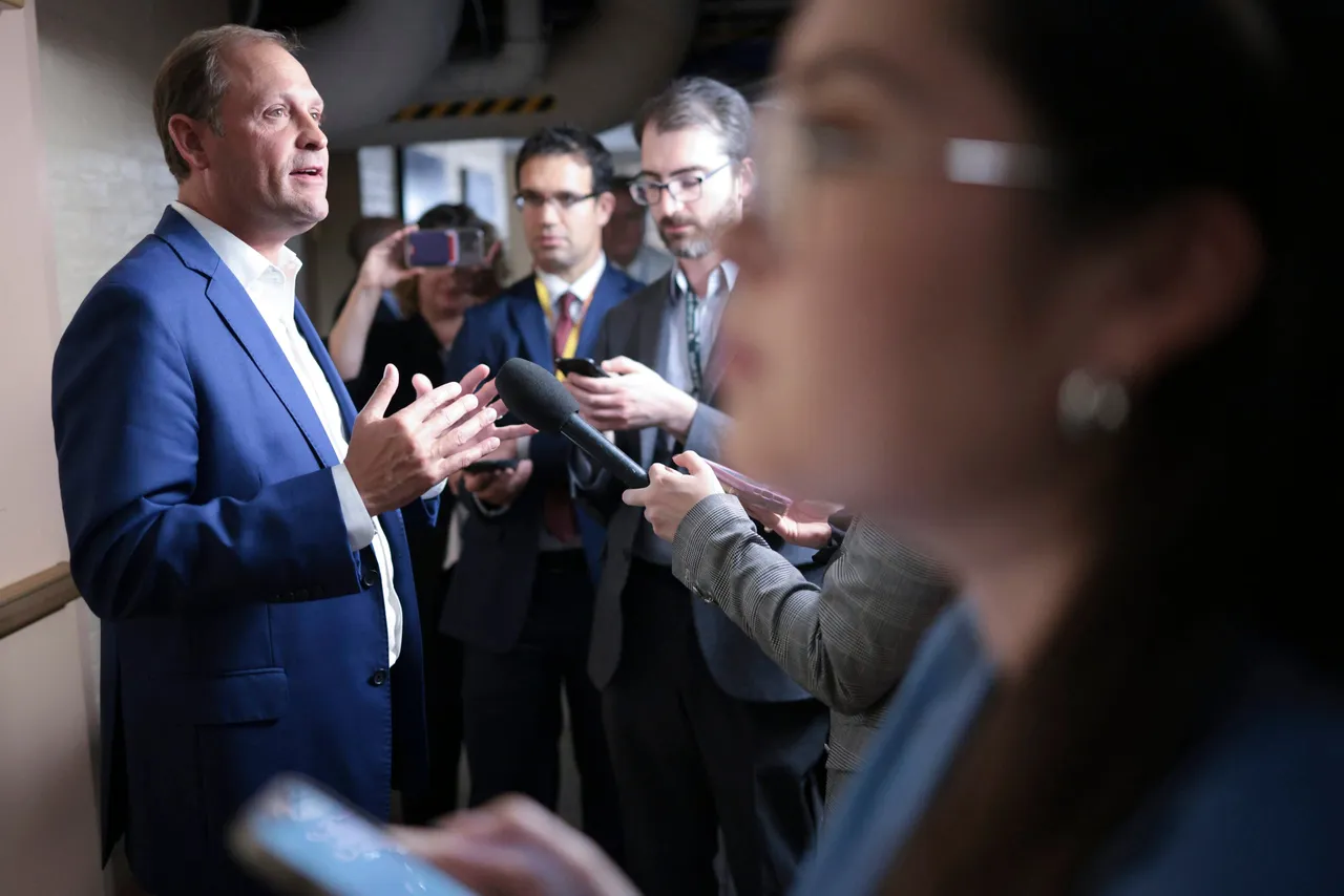 WASHINGTON, DC – OCTOBER 12: U.S. Rep. Andy Barr (R-FL) talks with reporters after a House Republican conference meeting on October 12, 2023 in Washington, DC. (Photo by Win McNamee/Getty Images)