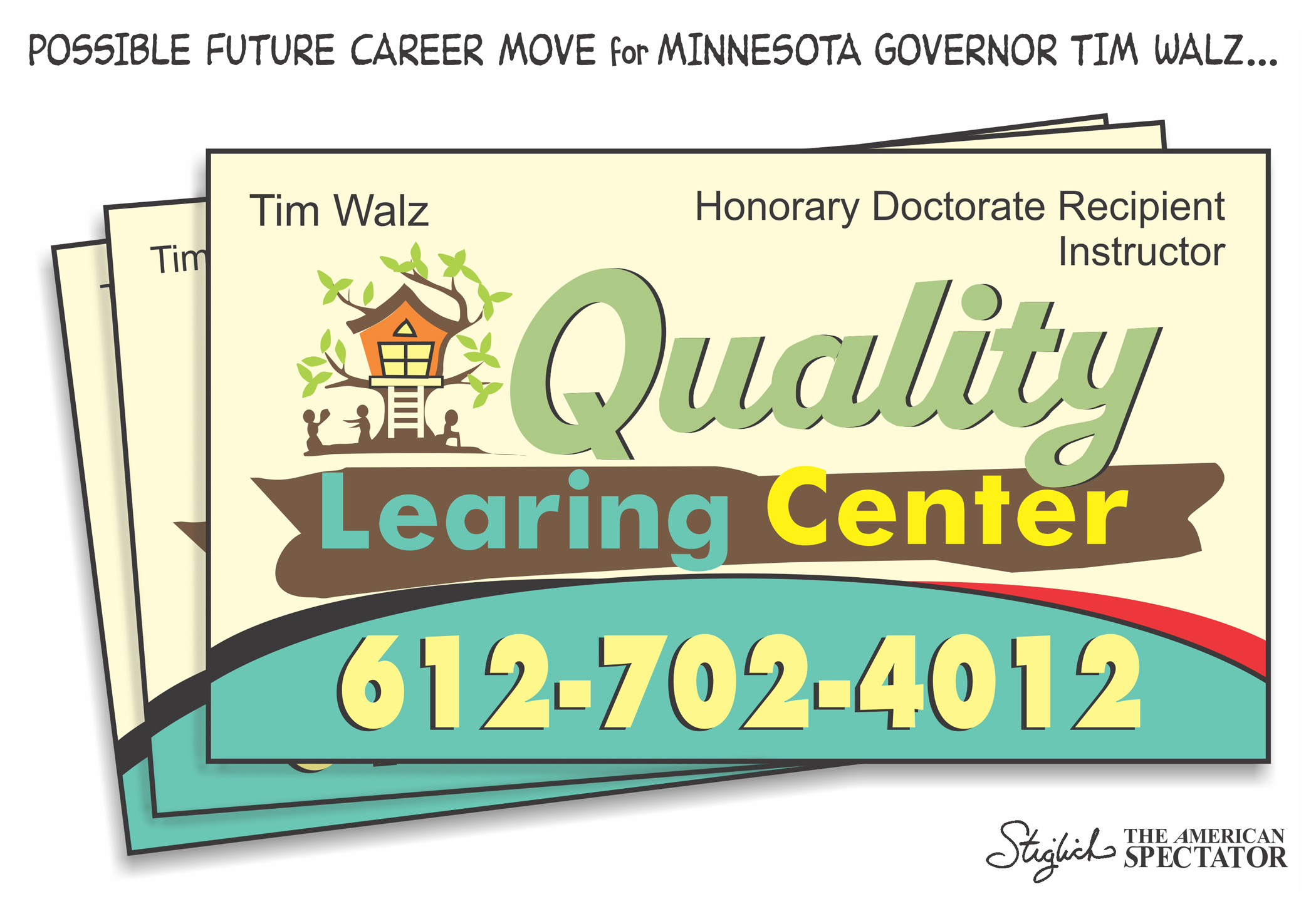 “Walz’s Next Move,” editorial cartoon by Tom Stiglich for The American Spectator on Jan. 6, 2026.