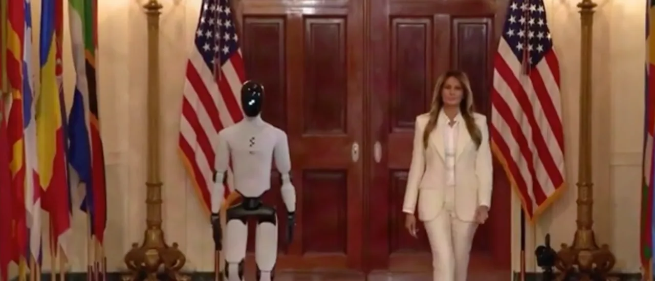During the Fostering the Future Together Global Coalition Summit, the robot stiffly walked down the hall with Melania as she entered the East Room to address 45 nations and 28 technology companies. The robot spent about one minute waving to everyone and then slowly disappeared into the background as the event began.