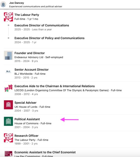 Dancey must have been reminiscing about his Labour career. Gone is any reference to the fact that Dancey worked for Peter Mandelson. For good measure he’s also got rid of his pitiful 2024 election performance in which he lost to Matt Vickers…